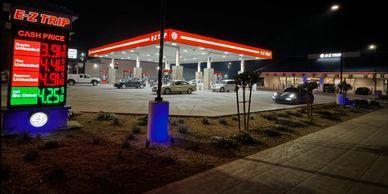 Upgrading canopies and signage boosts brand recognition and attracts new customers. A well-designed canopy complements the modern pump images, creating a cohesive and inviting atmosphere, along with a glowing LED competitive price is just encouraging customers to choose E-Z TRIP stations.